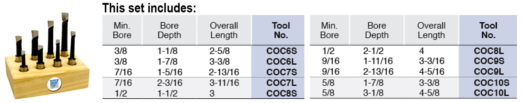5/8" Shank 10PCS CO-BORE Cobalt Boring Bar Set